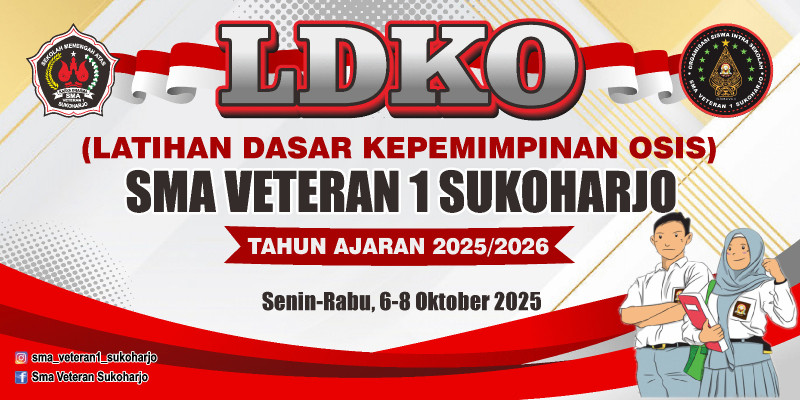 SMA Veteran 1 Sukoharjo kembali melaksanakan kegiatan Latihan Dasar Kepemimpinan OSIS (LDKO) untuk tahun ajaran 2025/2026. Kegiatan ini berlangsung selama tiga hari, Senin hingga Rabu, 6–8 Oktober 2025, dengan jumlah peserta sebanyak 49 siswa yang merupakan calon pengurus OSIS baru.